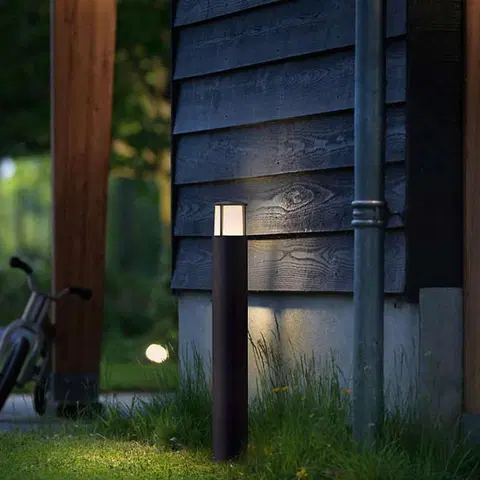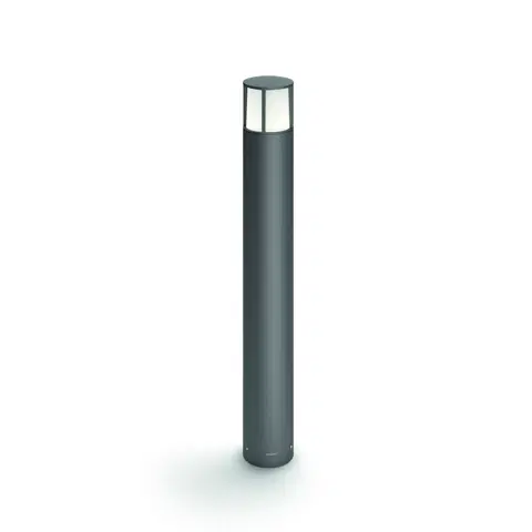 Philips Stock LED stolpe utelampe krever ingen ledning og monteres enkelt på bakken. Med en høyde på 77 cm og diameter på 10,4 cm vil den passe fint inn i de fleste hager og uteområder. Denne aluminiumslampen i antrasittgrå farge er robust og gir et stilrent uttrykk. Den leveres med 5 års garanti og er energieffektiv med energiklasse F.