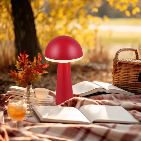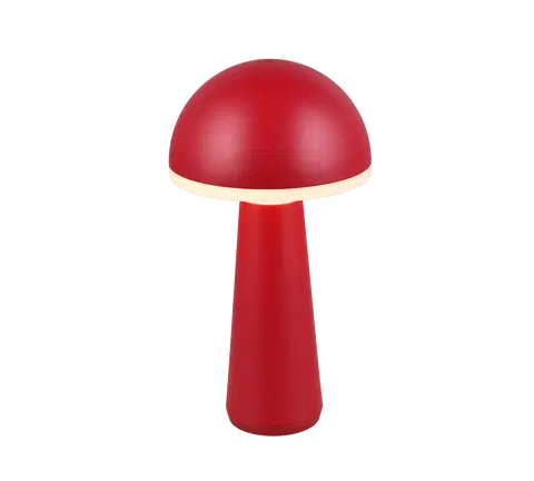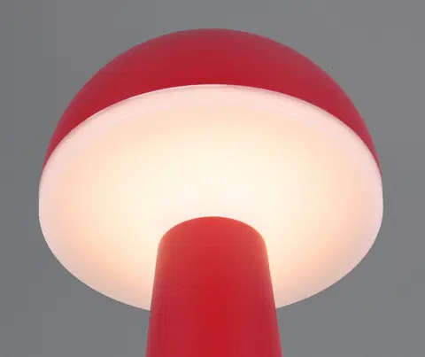 Den trådløse FUNGO bordlampen kombinerer innovativt design med praktiske funksjoner. Med sin karakteristiske soppform i moderne rød aluminium blir den et iøynefallende dekorativt element i ethvert rom. Lampen har integrert LED-teknologi som gir høy lyskvalitet og energieffektivitet.