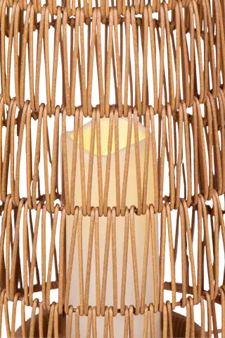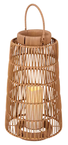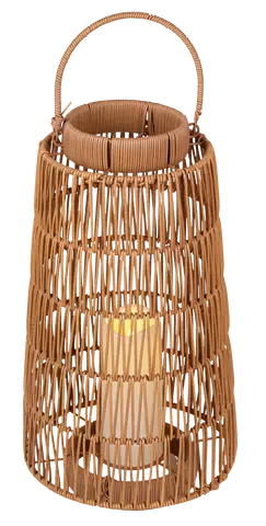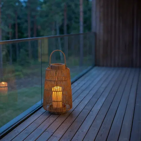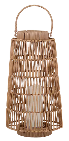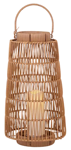 Santorini lykt solar 45 cm er en stemningsfull og dekorativ lyskilde som gir uteområdet et varmt og naturlig uttrykk. Den flettede designen i brun tone skaper et vakkert lysspill, mens det solide håndtaket gjør lykten enkel å flytte og plassere der du ønsker.