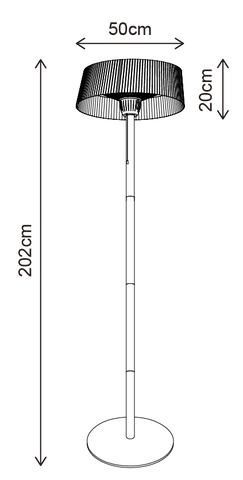 Med en høyde på 202 cm og en diameter på 50 cm, gir denne gulvmodellen effektiv varmefordeling samtidig som den fungerer som et dekorativt element. Det klassiske lampedesignet bidrar til en koselig stemning, perfekt for lange kvelder på terrassen eller i hagen.
