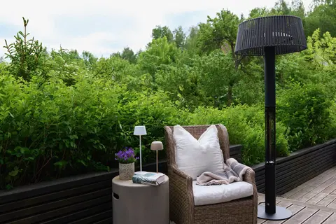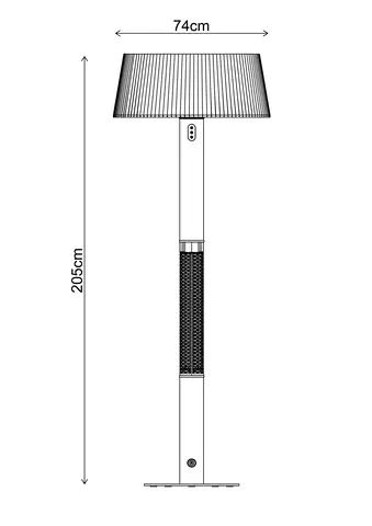 Oslo terrassevarmer er den perfekte løsningen for å holde uteområdet ditt varmt og behagelig, selv på kjølige dager. Med en imponerende effekt på 3000W gir den rask og jevn varme til både store og små terrasser, hager eller balkonger. Den har en stor diameter på 74 cm og en høyde på 205 cm, noe som gir god varmefordeling og gjør den til et sentralt element på uteplassen.