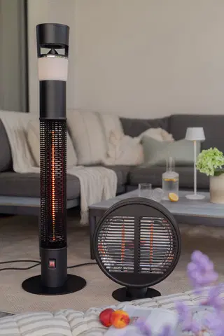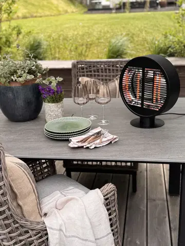 Denne runde terrassevarmeren er den perfekte løsningen for å forlenge utetiden på kjølige kvelder. Med en effekt på 1000W gir den effektiv og rask varme, slik at du kan nyte uteområdene dine året rundt. Den har en kompakt størrelse med en diameter på 35 cm og en høyde på 40 cm, noe som gjør den ideell for små og mellomstore terrasser, balkonger eller uteplasser.