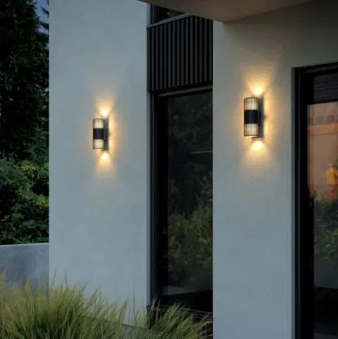 Aludra Double vegglampe fra Nordlux er en stilfull og slitesterk utendørslampe med IP54-gradering.