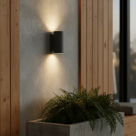 Denne praktiske vegglampen sprer lyset både opp og ned langs veggen for jevn og behagelig belysning. Den har to lysholdere med GU10-sokkel, noe som gir mulighet for dimbare lyspærer og regulerbar lysstyrke. Monteringsbraketten gjør installasjonen enkel.