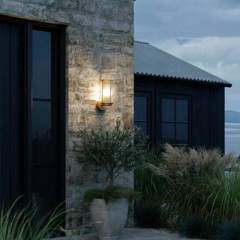 Linton vegglampe fra Nordlux er en elegant utebelysning utformet av den danske designduoen Says Who. Med sitt runde formspråk og riflete diffusor, får lampen et uttrykk som minner om en klassisk lanterne. Samtidig gir den behagelig, diffust lys til uteområdene.