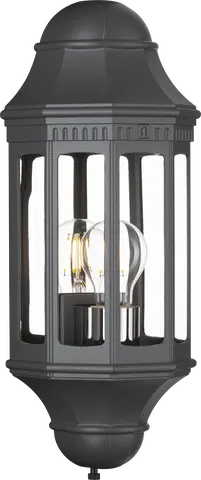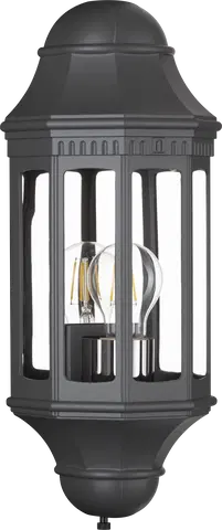 Denne klassiske utelampen måler 42 cm i høyde, 17 cm i bredde og 12 cm i dybde. Den er IP44-sertifisert og leveres med 5 års garanti. En solid og tilnærmet vedlikeholdsfri lampe for utendørsbruk.