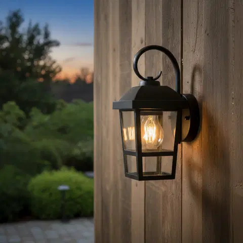 Lampen er IP44-klassifisert, noe som gjør den godt beskyttet mot vær og vind. Den bruker en standard E27-lyspære (maks 40W, 230V), slik at du enkelt kan velge lysstyrke og fargetemperatur etter behov.