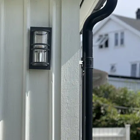Ytterholmen har en elegant og minimalistisk design med fokus på holdbarhet og enkelhet. Materialer som polykarbonat og metall gjør lampen solid og værbestandig, mens den magnetiske frontdekoren gir et rent uttrykk. Lampen er dobbelt isolert for ekstra sikkerhet.