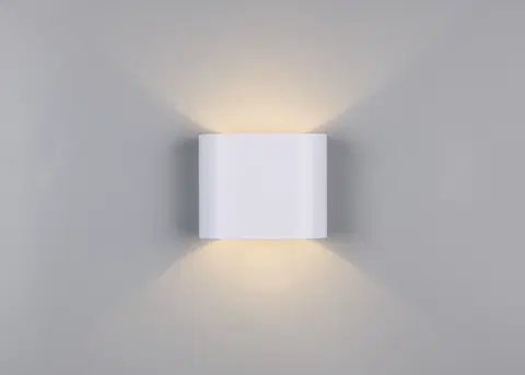 Gi rommet et elegant løft med denne minimalistiske vegglampen i hvit matt finish. Lampen har en kompakt og moderne form med avrundede hjørner, og er laget i solid metall. Den måler 15 cm i bredde og 12 cm i høyde, og veier kun 0,4 kg - perfekt for enkel montering på vegg.