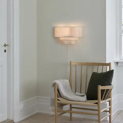 Vegglampen har en diskré tekstiloverflate i en nøytral fargetone som passer perfekt inn i både moderne og klassiske interiørstiler. Leveres med ledning og bryter for enkel og fleksibel montering.