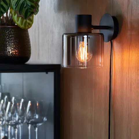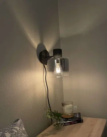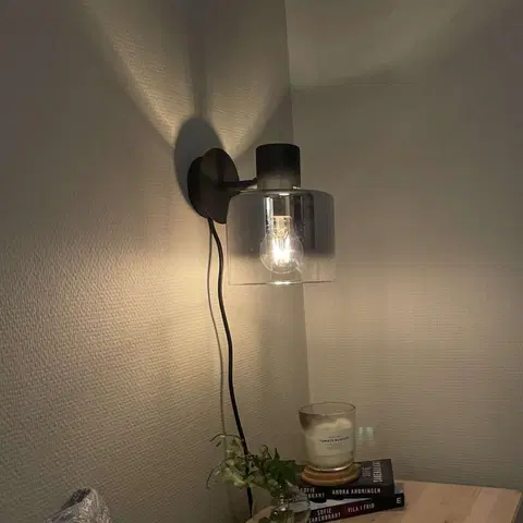 Bowl vegglampen fra Nova Life er en dekorativ og funksjonell lysløsning for ditt hjem. Den har en unik design med en skjerm i røykfarget glass som fader over i klart, satt inn i en ramme av sort metall. Glasset kan vendes enten opp eller ned på veggen for å tilpasse uttrykket.