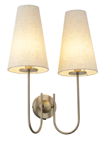 Charmante vegglampe er en vakker og klassisk vegglampe som gir interiøret et varmt og sofistikert uttrykk. Lampen er utført i antikk messing som gir en tidløs sjarm, kombinert med skjermer i lyst linstoff som myker opp lyset og skaper en behagelig atmosfære.