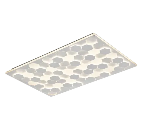 Den 115 cm lange lampen har en hvit metallramme som gir et rent og tidløst uttrykk. Takket være den integrerte LED-teknologien har den en imponerende lysstyrke på 6200 lumen, samtidig som den kun forbruker 65W effekt.
