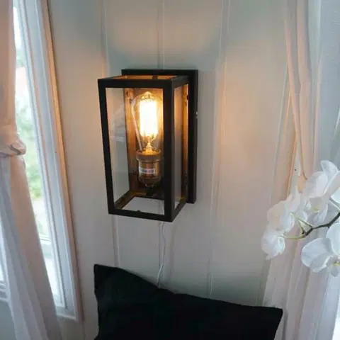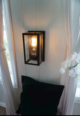 Dovre vegglampe fra MS Belysning er en stilig lampe laget av svart metall og glass. Den har et moderne, rustikt uttrykk som vil passe perfekt inn i de fleste interiørstiler. Lampen har en høyde på 25 cm og en bredde på 13 cm, og har en 2 meter lang ledning med bryter.