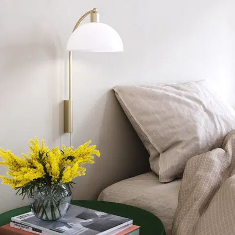 Ellen vegglampen fra Nordlux er en minimalistisk og tidløs lampe med referanser til skandinavisk design. Den avrundede glassskjermen utgjør en elegant kontrast til den lette messingen og gir et bredt lysfelt med visuelt volum. Ellen gir et behagelig lys som passer perfekt ved sengen eller sofaen.
