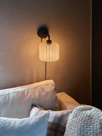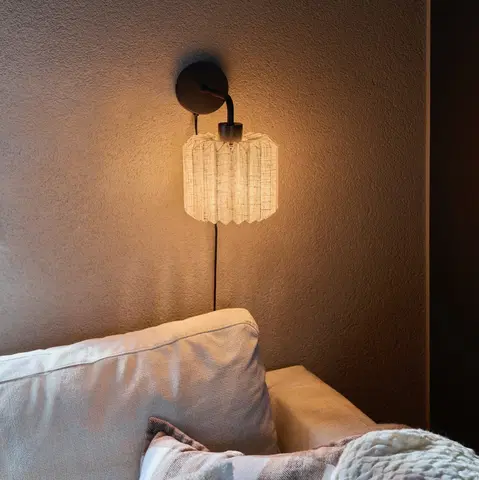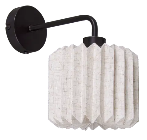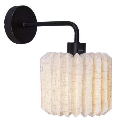 Stilren og funksjonell vegglampe i Fleur-serien. Lampen har en elegant plisséskjerm i lin kombinert med sort metall, noe som gir et lunt og klassisk uttrykk.