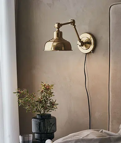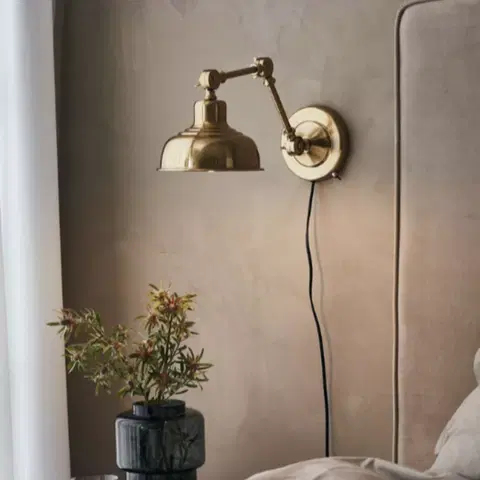 Grimstad vegglampe fra Markslöjd er et elegant designvalg i mørk messing. Med sin justerbare konstruksjon kan denne lampen vinkles for å kaste lyset nøyaktig der det trengs. Den gir funksjonalitet og et dekorativt preg til ethvert rom.