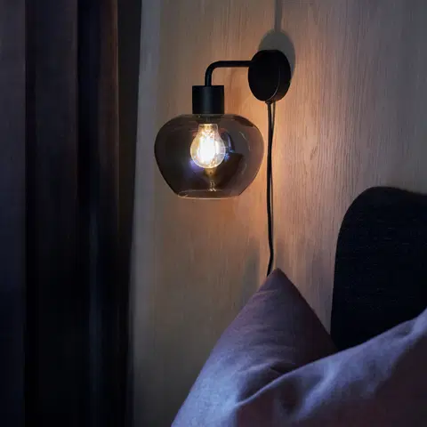 Kelly vegglampe fra Nova Life er en sofistikert tilføyelse til hjemmet med sitt røykfargede, munnblåste glass. Denne lampen er ideell som en nattbordslampe eller for å skape stemning i stuen eller gangen. Det unike glasset kan inneholde små luftbobler, noe som bare tilfører karakter og understreker håndverket bak hver lampe.