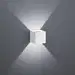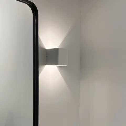 Louis er en minimalistisk vegglampe som gir et behagelig varmhvitt lys. Lampen lyser både oppover og nedover, noe som skaper en flott lyseffekt. Med sin integrerte LED-lyskilde på 4,3W og 430 lumen, gir den et godt arbeidslys samtidig som den er energieffektiv. Designet består av en liten, kubisk form i aluminium med hvit overflate.