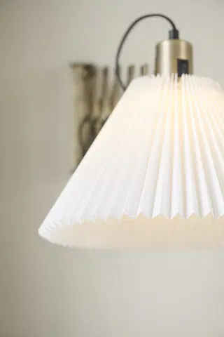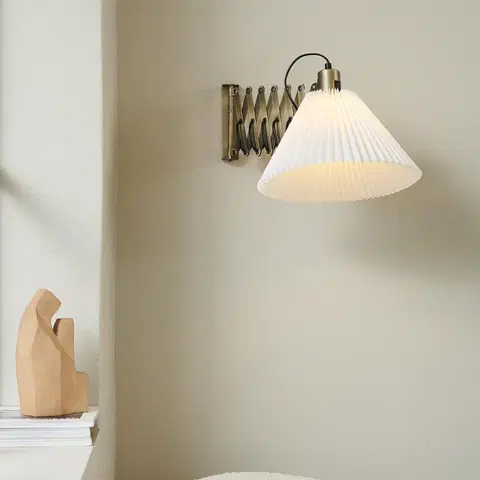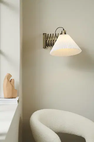 Medina vegglampe fra Halo Design er en stilfull og funksjonell belysningsløsning. Den har en uttrekkbar saksearm som kan svinges til begge sider, slik at du enkelt kan tilpasse belysningen etter behov. Skjermen er plissert og i tekstil, og kan klikkes av stativet for enkel rengjøring under vann.
