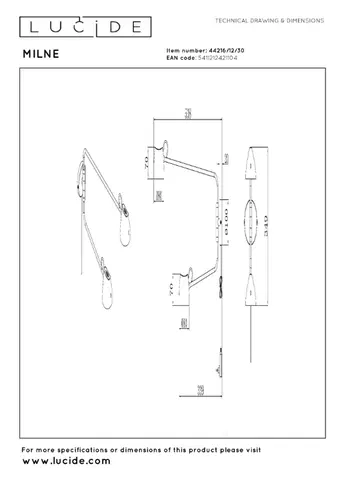 Milne er en moderne vegglampe som kombinerer minimalistisk design med smart funksjonalitet. Med sitt slanke metallstativ og to buede lampeskjermer utstråler Milne en dynamisk og futuristisk estetikk - perfekt for deg som ønsker en stilren og fleksibel belysningsløsning.