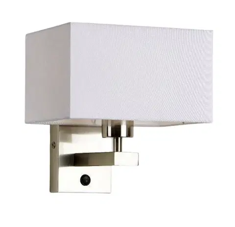 Vegglampen har en ren hvit tekstilskjerm som gir et mykt og behagelig lys, ideelt for å skape en lun og innbydende atmosfære i ethvert rom. Basen er laget av stål, som gir lampen et sofistikert uttrykk og fremhever dens moderne preg.