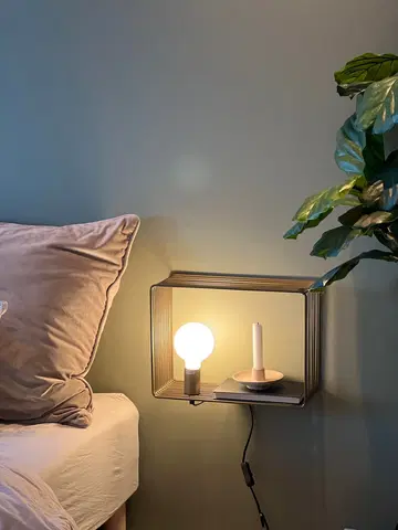 Shelf vegglampen fra Markslöjd kombinerer funksjonalitet og tidløst design på en unik måte. Den integrerte hyllen gir deg mulighet til å plassere små gjenstander ved siden av lyskilden, og skaper en personlig touch i rommet. Med sin messingsfinish gir lampen en tidsriktig og elegant stemning som passer perfekt til skandinavisk design.