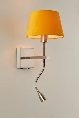 Denne vegglampen i stål har et tidløst og moderne utseende som vil passe godt inn i de fleste hjem. Med to lyskilder får du fleksibel belysning, hvor lesearmen kan vinkles for å kaste lyset akkurat der du ønsker. Hovedlampen er på 40W og gir godt lys til stue eller kjøkken.