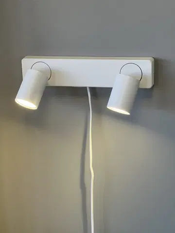 De to spotlightene kan enkelt vinkles for å kaste lyset i ønsket retning. Lampen bruker energieffektive GU10 LED-pærer (ikke inkludert) og har en maksimal effekt på 2 x 25W. Med en bryter på ledningen er den enkel å slå av og på. I tillegg har den dobbelt isolert beskyttelse for økt sikkerhet.