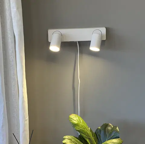 Scott Spot vegglampe fra Nova Life er en minimalistisk og funksjonell vegglampe i hvit finish. Med sine to justerbare spotlights gir den presis belysning akkurat der du trenger det, enten det er for lesing, arbeid eller annen aktivitet. Lampen er laget av metall og har en dimbar funksjon, slik at du kan regulere lysstyrken med en passende dimmer på ledningen eller støpselet.