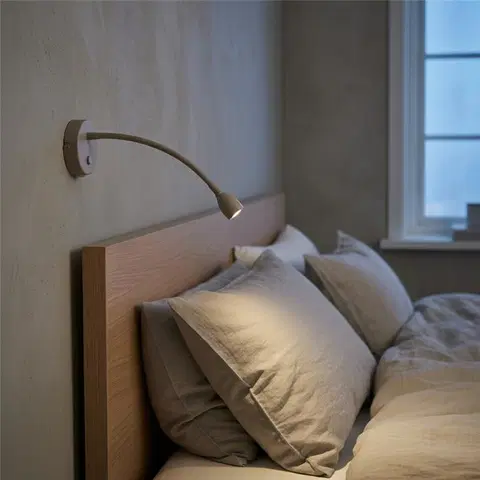 Willy LED vegglampe i beige fra Nova Life gir rommet et varmt og moderne preg. Den lange, fleksible armen gjør lampen perfekt som leselys ved sengen eller ved favorittstolen, og lar deg justere lyset nøyaktig dit du trenger det.