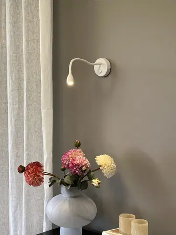 Willy LED vegglampe fra Nova Life er en minimalistisk lampe med tidløst design. Den lange, fleksible armen gjør den til et ideelt leselys ved sengen. Driveren sitter i veggboksen, slik at lampen kan kobles direkte til veggpunktet.
