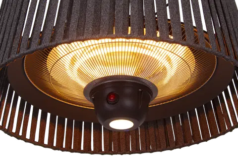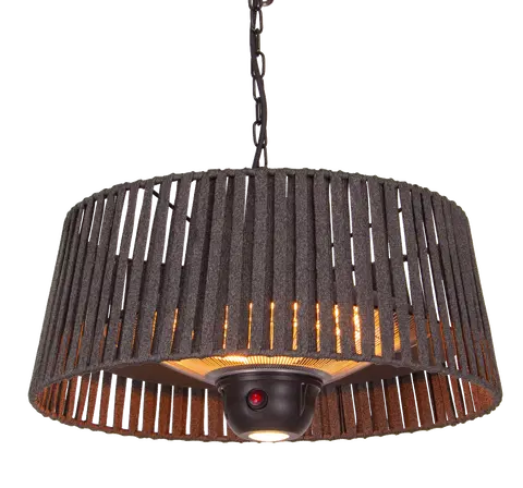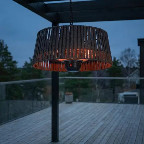Terrassevarmer Oslo tak er en moderne og funksjonell varmeløsning som kombinerer effektiv oppvarming med integrert belysning. Det stilrene designet i grå finish med dekorativt tekstilskjerm gir et elegant uttrykk, samtidig som det skaper en lun og behagelig atmosfære på uteplassen.