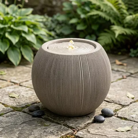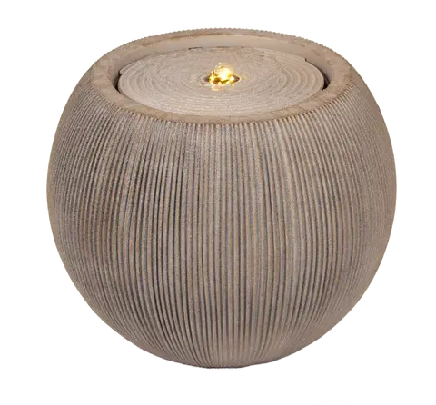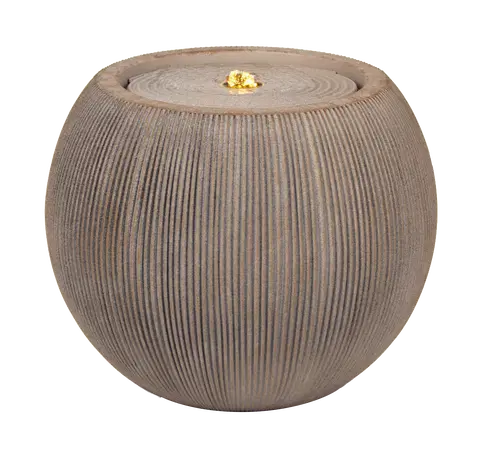 Skap en rolig og harmonisk atmosfære i hagen, på terrassen eller inne i hjemmet med denne stilrene vannfontenen i lys brun utførelse. Fontenen har et moderne, avrundet design inspirert av naturstein, med en strukturert overflate som gir et elegant og naturlig uttrykk.
