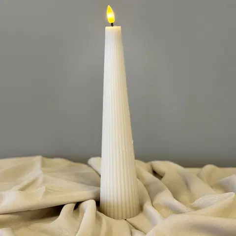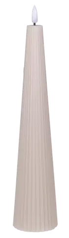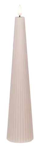 Dette høye og stilrene LED-kubbelyset i konisk form kombinerer moderne design med trygg og stemningsfull belysning. Den rillete overflaten gir et dekorativt og teksturert uttrykk, mens den dempede gråfargen passer perfekt inn i både minimalistiske og varme interiørstiler.