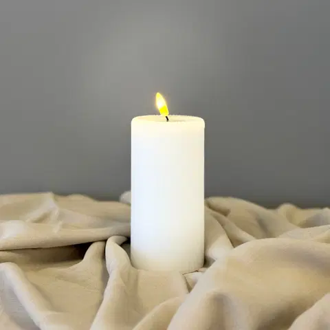 Skap en lun og stemningsfull atmosfære med dette elegante LED kubbelyset i hvit soyavoks. Lyset har en naturtro flammeeffekt som gir følelsen av ekte levende lys, men uten sot, varme eller brannfare. Perfekt for hjem med barn eller kjæledyr, og ideelt til både hverdagsbruk og festlige anledninger.