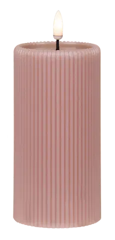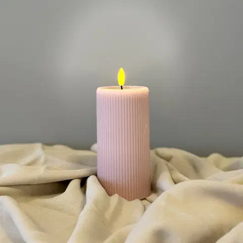 Tilfør hjemmet et mykt og elegant preg med dette vakre LED-kubbelyset i rosa soyavoks. Det riflede designet gir lyset et moderne og eksklusivt uttrykk, mens den naturtro LED-flammen skaper en varm og koselig stemning – helt uten åpen flamme, røyk eller sot.