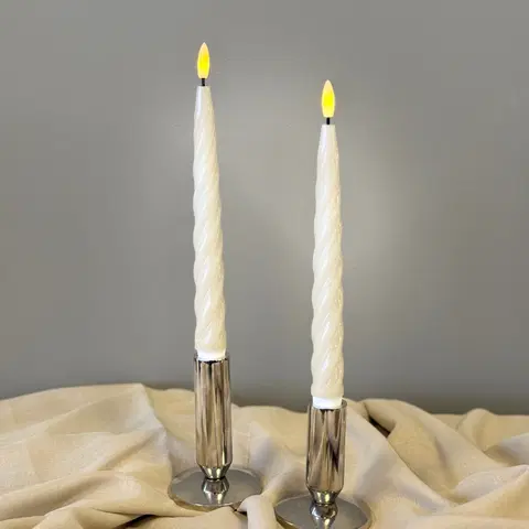 Gi borddekkingen et moderne og elegant preg med disse stilige LED-kronelysene i twist-design. Den sofistikerte gråfargen gir et tidløst og stilrent uttrykk, mens den realistiske flammeeffekten skaper koselig stemning.