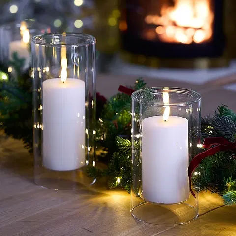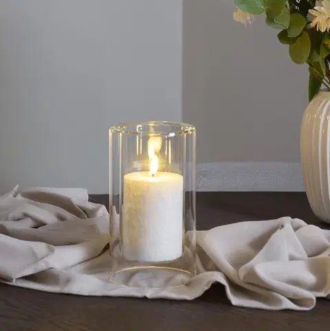 Lykten er 19,5 cm høy og laget i klart, tykt glass som beskytter flammen og samtidig lar lyset skinne vakkert gjennom. Den egner seg like godt til levende lys som til LED-stearinlys – ideell for koselig belysning på bord, gulv eller i vinduskarmen.
