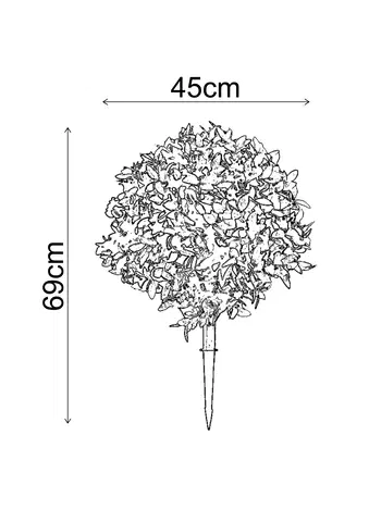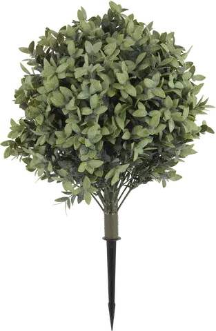 Denne kunstige buskbomplanten er et praktisk og stilfullt valg for innendørs og utendørs dekor. Med en diameter på 45 cm har planten en fyldig og naturlig grønnfarge som gir et realistisk utseende. Den er designet med Anti-UV beskyttelse for å motstå falming og holde seg frisk og livlig under solfylte forhold. Planten leveres med et valgfritt spydfeste, som gjør det enkelt å plassere den i potter eller direkte i bakken. Et vedlikeholdsfritt alternativ som gir hagen, balkongen eller inngangspartiet en tidløs og elegant finish.