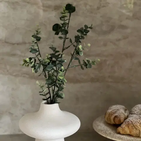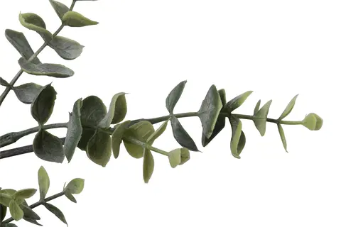 Eucalyptusgrenen kan brukes i en rekke dekorasjoner, enten alene som fokuspunkt eller kombinert med andre elementer for å skape et harmonisk uttrykk. De grågrønne nyansene og avrundede bladene gir en rolig og avbalansert følelse som passer godt inn i moderne og tidløse interiørstiler. Grenen leveres enkeltvis i forpakningen.