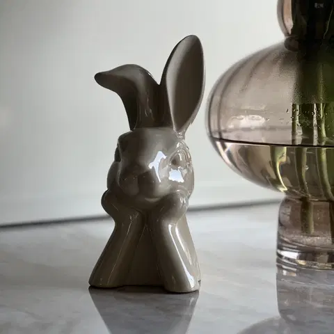 Denne sjarmerende kaninen i keramikk er en flott påskedekorasjon som tilfører et koselig og naturlig preg til hjemmet ditt. Den er laget i en varm brun farge, som gir et tidløst og landlig uttrykk. Kaninen er perfekt for å skape en lun og påskelig stemning på bordet, hyllen eller som en del av en påskearrangement.