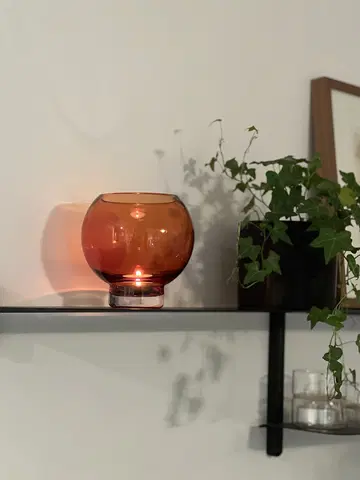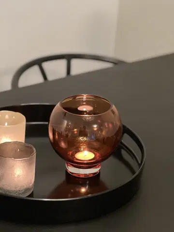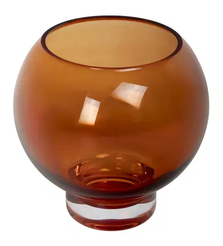 Den runde formen tilfører et mykt og organisk preg, mens den lille størrelsen gjør vasen lett å plassere på bord, hyller eller i vinduskarmen. Det brune glasset tilfører dybde og en subtil retrofølelse, samtidig som det fremhever fargene på blomstene du velger å bruke.