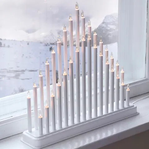 Glow 33 er en vakker hvit adventsstake som som kaster et klart og mildt lys rundt seg. De mange små lysene som stiger opp fra tynne, elegante staver, minner om snøfnugg som danser stille ned i en frostklar vintermorgen. Hvert lys skinner rolig og rent, og sprer en stemning av fred og klarhet.