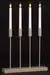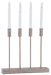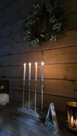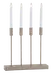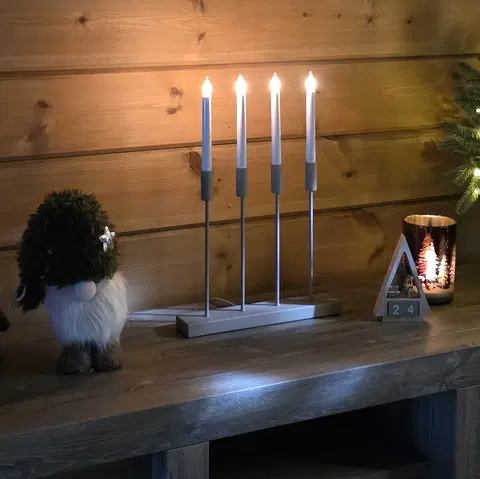 En moderne adventsstake med rene linjer i en dempet sandfarge. Fire slanke, høye LED-lys står presist på rekke, og skaper et rolig, jevnt lys uten flammer. Designet er stilrent og vakkert, og skaper en rolig og elegant stemning i rommet.