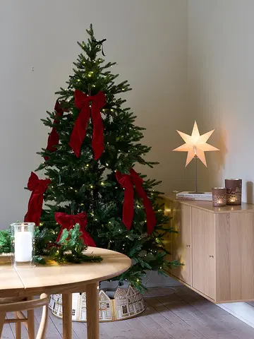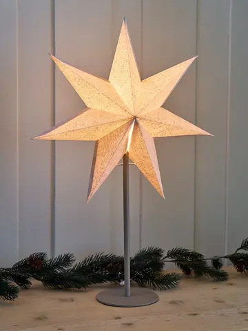 Med en total høyde på 55 cm og en stjernediameter på 40 cm, blir den et dekorativt blikkfang på vinduskarmen, skjenken eller sidebordet. Adventsstaken er utstyrt med en E14-sokkel (15W, 230V) og har en 2 meter lang ledning med bryter, som gjør den enkel og fleksibel i bruk.
