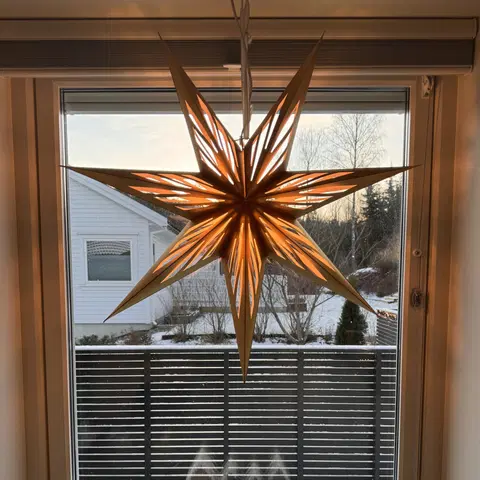 Sparkle papirstjerne fra Nova Life er en vakker og tradisjonell adventstjerne i gull som bringer julestemning inn i hjemmet. Med en diameter på 70 cm blir denne stjernen et imponerende blikkfang i vinduet eller over et julepyntet rom. Den dype gullfargen gir et klassisk preg som fremhever julens magiske atmosfære.