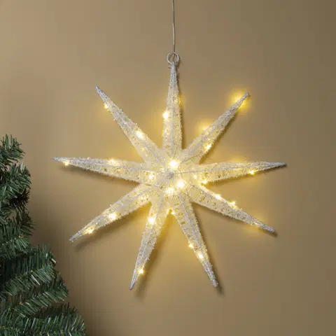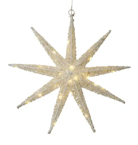 Denne elegante LED-stjernen fra Nova Decor & Lighting vil bringe festlig glans til julestemningen. Med sine 20 integrerte LED-lys og glitterdetaljer, sprer den et vakkert og festlig skinn. Den slanke metallstjernen på 50 cm i diameter er perfekt for å sette stemningen, enten du henger den i vinduet eller på veggen. Denne hvite stjernen med integrerte LED-lys er laget av metall og har IP20-klassifisering for innendørs bruk. Energieffektiv og med 2 års garanti, vil denne elegante LED-stjernen lyse opp juletiden med sitt festlige lys.