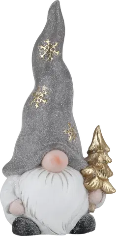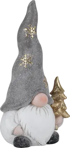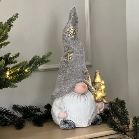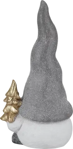 Denne nissen med juletre fra Nova Life er en dekorativ og stemningsskapende julegave eller tilskudd til din julepynt. Med integrerte LED-lys som lyser opp det små juletreet, skaper den en koselig julestemning i hjemmet. Nissen og treet har en grå farge som gir et moderne uttrykk. Lysene drives av 3 AA-batterier som kjøpes separat. Produktet har en praktisk timerfunksjon som automatisk skrur av og på lysene. Nissen med juletre måler 47,5 cm i høyden, 24 cm i bredden og 19,5 cm i dybden. Den kommer enkeltvis forpakket og er batteridrevet.