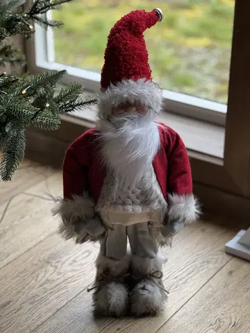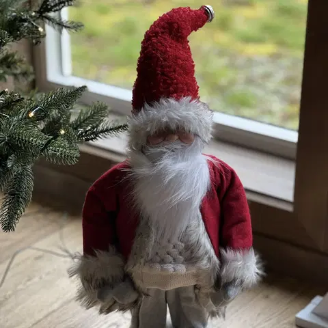 Denne nissen fra Nova Decor & Lighting er en 60 cm høy og 30 cm bred stoffdekorasjon i rød farge.